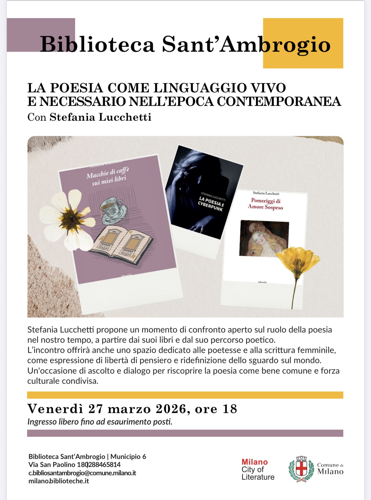 Stefania Lucchetti presentazione in biblioteca Calvairate, Milano